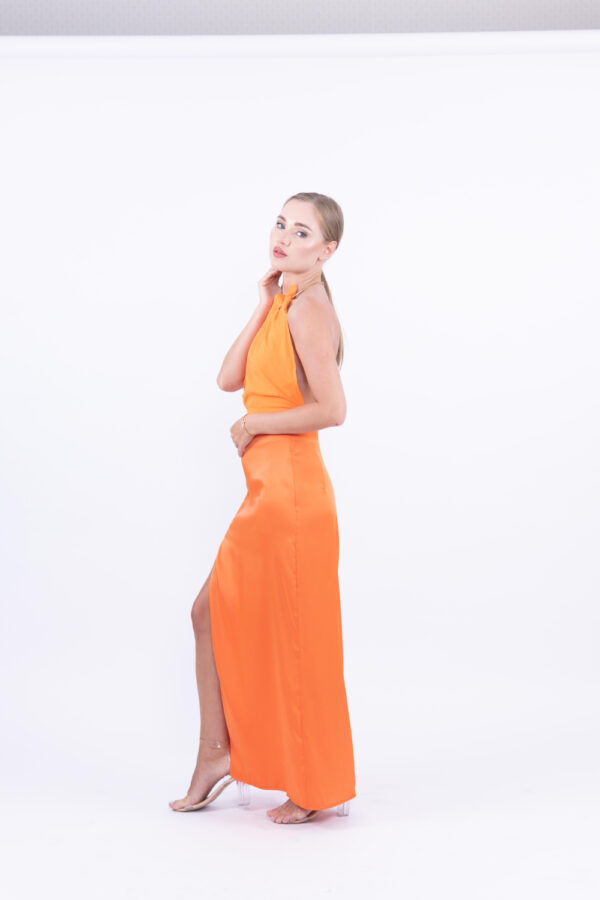 Introducing a show-stopping party dress: crafted in a captivating solid hue that exudes elegance. This sleek ensemble boasts a daring waist cut out, adding a touch of allure, while a sultry slit adorns the front, effortlessly highlighting every step with grace and sophistication. Flaunt your style and leave a lasting impression in this stunning piece.